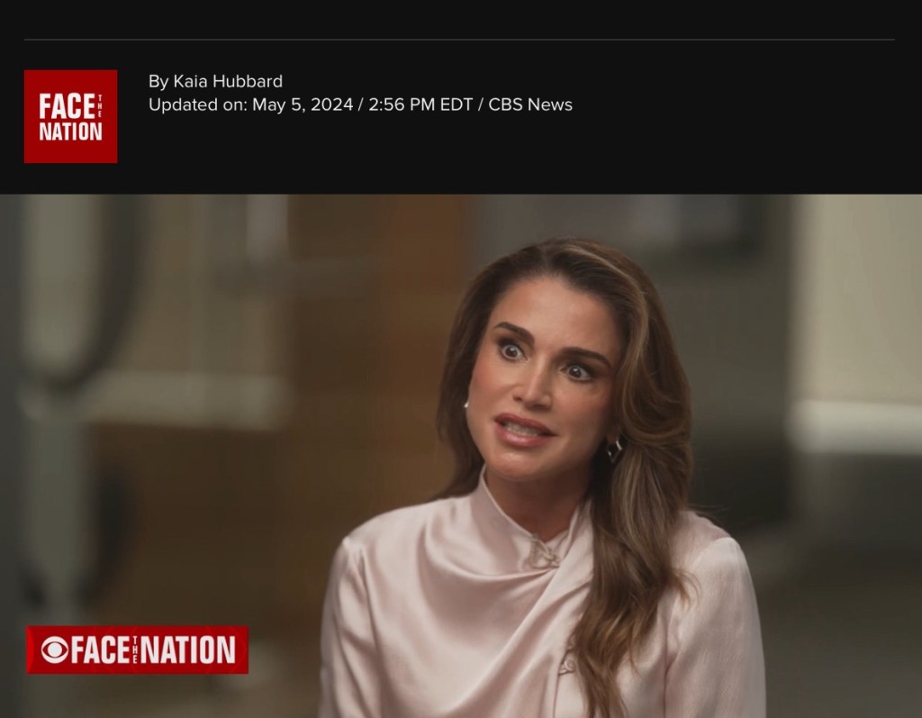 “People view the U.S. as being a party to this war,” Rania said in an interview with “Face the Nation” moderator Margaret Brennan. “Because, you know, Israeli officials say that without U.S. support, they couldn’t launch this war.”